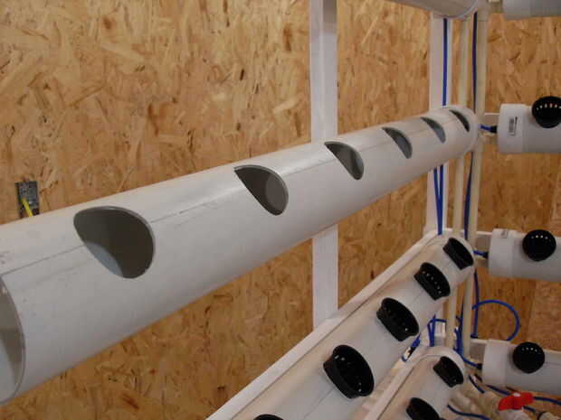 En un extremo del tubo es un casquillo de extremo liso PVC de 3 pulgadas. La tapa no se pega en su lugar pero todavía se ajusta perfectamente en el extremo de la tubería y provea un cierre hermético. La tapa se puede quitar de vez en cuando así un cepillo o un artículo similar puede ser utilizada para limpiar desechos de la planta.
