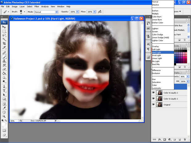 Hacer una copia de "Color y licuar 2" capa y llame esta capa "Luz dura".