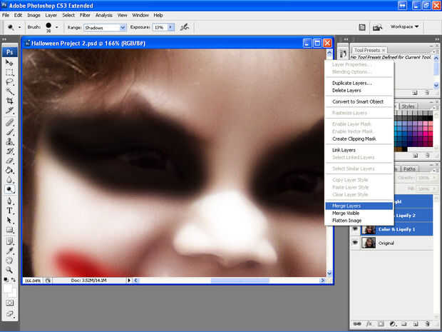 Seleccione todas las capas excepto la capa "Original", click derecho y golpe combinar capas.