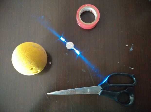 - Una pelota de esponja -A tijera -A pila cr2032 de la moneda -Algunos cinta aislante -Un led (he utilizado un azul pero lo perdido, por lo tanto, en lugar de otro utiliza una roja más adelante)