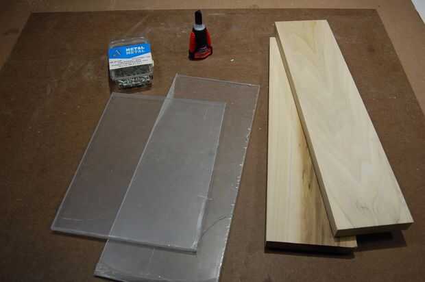 Por supuesto tengo trozos de álamo... También tengo atajos acrílico de 1/4", tornillos de máquinas y pegamento.