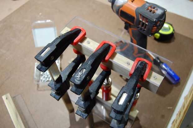 Para mantener todo apretado y en su lugar, lanzo en algunas abrazaderas antes de apretar los tornillos. La mayoría del trabajo se realiza con un controlador de impacto, pero hago el último bit a mano para evitar dañar la madera.