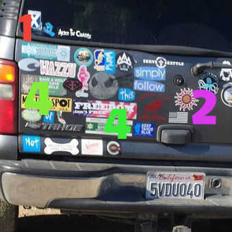 3 puntos - Etiqueta del coche - agrupaciones, como la familia de palo