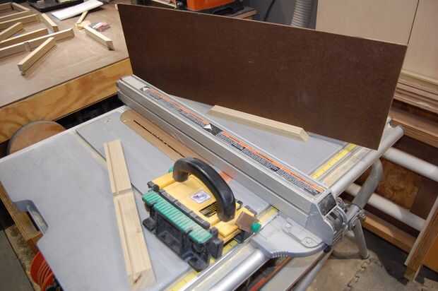 Para las ranuras del panel inferior, yo ajuste la altura de la hoja a 1/4" y la guía a 1/4". Se corta una ranura en la parte inferior de cada panel lateral. Preste atención a sus ingletes para asegurarse de que usted está cortando en el interior... enfrenta también prestar atención a su grano continuo por lo que no corta en el lado equivocado (parte inferior contra la parte superior). El divisor de centro obtiene una ranura en ambos lados. Utilicé madera 3/16" para los paneles, así que recorrió todas mis partes de la sierra, había movido la cerca hacia fuera 1/16" y corrió otra vez todas las piezas.