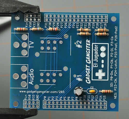 El plomo en el lado de la raya es más corto que el otro cable y pasa por el orificio circular. El cable más largo (no raya lateral) pasa por el agujero cuadrado, más cerca de la '+' del tablero de circuito.