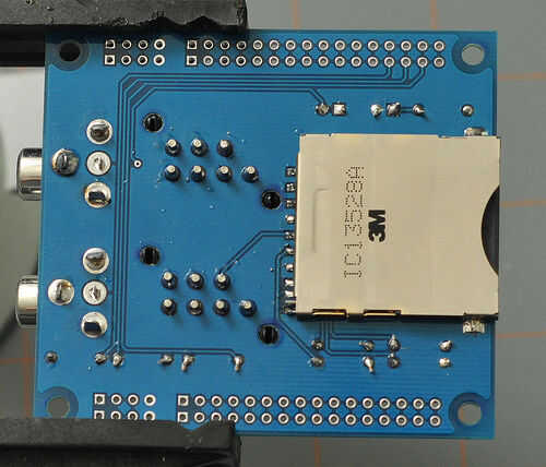 Por último, añadir las cabeceras de pin en la fila exterior. Es más fácil primero insertar los encabezados de pin en la plataforma de la hélice, El Jugador de la gota en la parte superior y luego de la soldadura de las cabeceras de pin a la tarjeta.