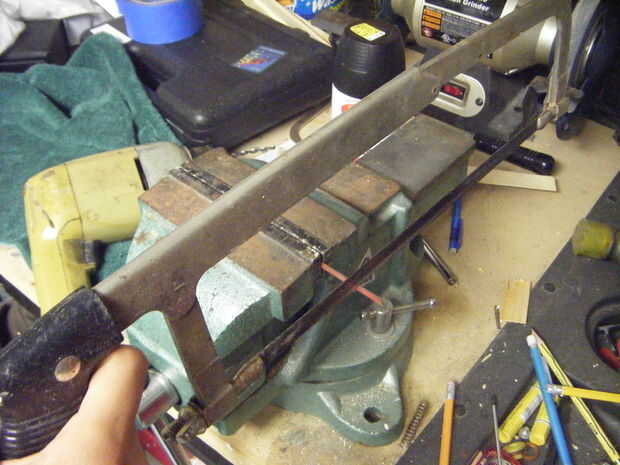 Cortar el dedo más externo del rastrillo en la base. Usé una sierra para metales, pero es posible que pueda utilizar unas tijeras de trabajo pesado si no tienes una sierra.