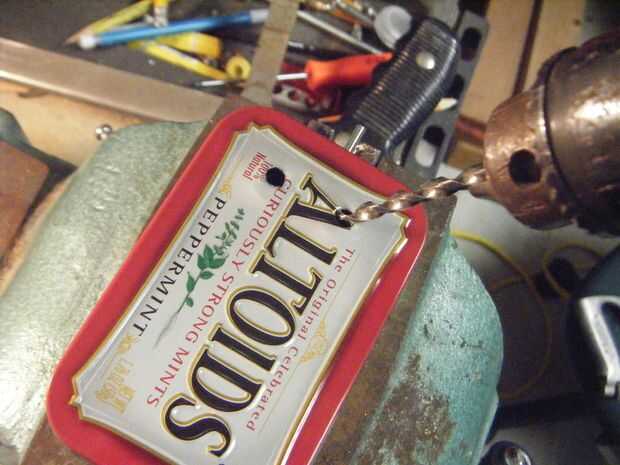 Tienes que taladrar dos orificios en la tapa de la lata para los tornillos de la máquina pasar a través. Los agujeros deben ser espaciados como sigue: