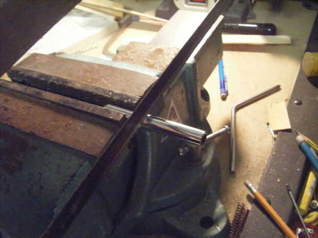Usando una sierra para metales o coldsaw, corte dos longitudes de 1 3/4" de 1/8" barra redonda.