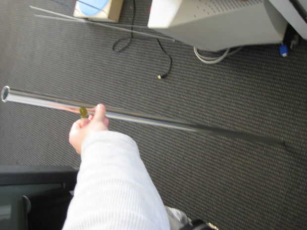 -Un 45,5" de barra de ducha de aluminio mal corte transversal desde el extremo de un poste de 6' por medio de una sierra para metales.