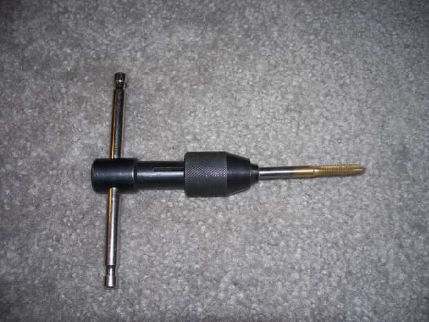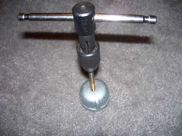 Baste para decir, básicamente, enrosque el grifo en el agujero, 2 vueltas y luego a una vuelta. Usar mucha lubricación. Aquí, he utilizado aceite vegetal. Cualquier lubricante va a hacer, pero usted debe utilizar algunas. Los grifos están hechos de acero de muy alta calidad y están muy afilados, pero debido a las ranuras en cada lado, son inherentemente frágiles y muy débiles. He perforado y golpeado ligeramente cientos y cientos de agujeros, y aún romper los grifos. Ir despacio y tener cuidado. Debido a la dureza del acero, si se rompe un grifo en un agujero, usted destruirá varios pedacitos de taladro y el agujero que hiciste originalmente, tratando de quitar el grifo.