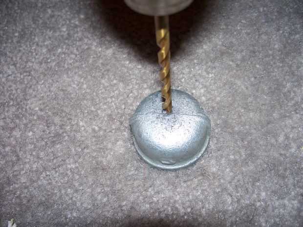 Antes de que el taladro, me gustaría señalar que solía mi pie apoyo mis tubos y la tapa mientras que hice la perforación. Esto no es la manera más eficiente para apoyarlo y es una de las formas menos seguras de hacerlo. Le recomiendo usar un vice, abrazadera o gran par de mordazas de tornillo de banco. Uno podría utilizar una llave de tubo para sujetar la tubería, teniendo en cuenta que está diseñado para sostener rápidamente a tuberías y similares. Sobre todo, ser seguro. Sujete el tubo con algo sólido, por lo que no comenzar a girar alrededor y le decapita a. (Gracias NachoMahma)