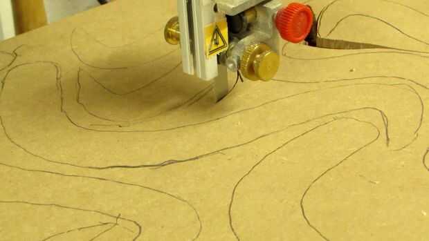 La Sierra de cinta es probablemente la forma más rápida de ir sobre esto, por lo menos si tiene una hoja más delgada instalada que permite curvas más estrictas para cortar. Probablemente, la población trazada sobre será demasiado grande para conseguir en todas partes a la vez, por lo que recomiendo cortar la pieza en partes más pequeñas antes de golpear realmente esa línea - o no, ver dos pasos anteriores.