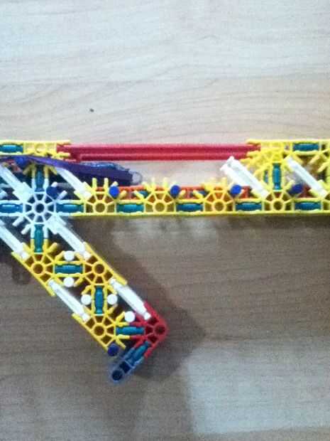 tiene dos barrilesmuy precisa y brotes bastante lejos sobre 50 si te pero bastantes bandas de goma entiene un alcance atiene una estructura muy fuerte y puede manejar mucha fuerzaPaso 1: mango 20 círculos rojos de 1/46 varillas blanco4 barras de amar