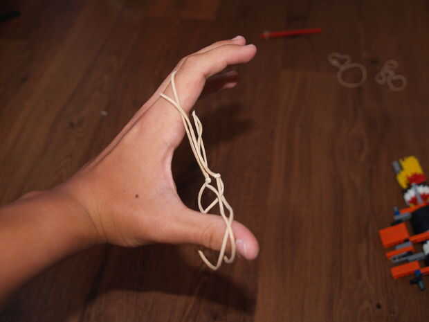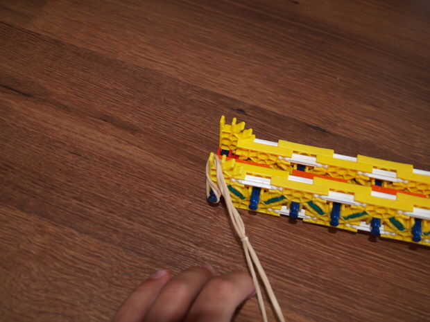10: pull back y ponerlos en una barra azul arriba a la naranja con tal como se muestra en la imagen, si sus elásticos son nuevos, que sean allí por un tiempo