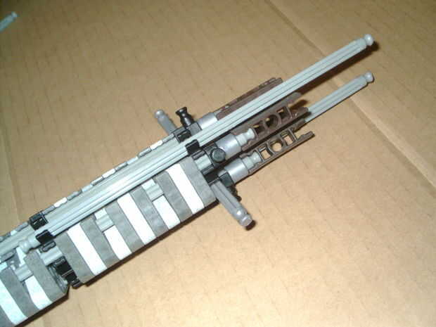 Hola, este es mi KVG sniper o rifle de precisión. Es 1.20 metros de alto y 4 pies. Es muy resistente, dado los refuerzos de metal. Su gama es cerca de 70 pies, (20 metros), aunque se precisa de hasta 30 pies. Su mag no es extraíble, pero con un tamañ