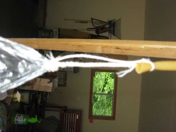 el cohete de agua es un cohete basado en botella de plástico que utiliza agua a presión para impulsar hacia arriba y luego un paracaídas para mantener su capacidad de carga, aquí, una pelota de tenis, en el aire durante un largo periodo de tiempo. El