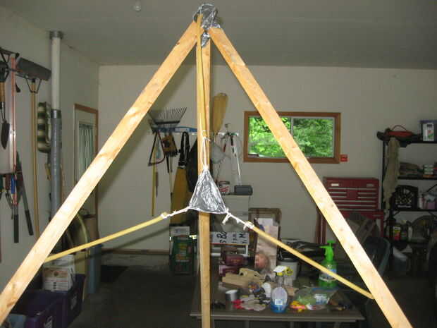 el cohete de agua es un cohete basado en botella de plástico que utiliza agua a presión para impulsar hacia arriba y luego un paracaídas para mantener su capacidad de carga, aquí, una pelota de tenis, en el aire durante un largo periodo de tiempo. El