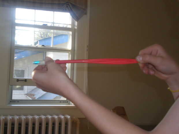 Cuando tire el proyectil y balón para lanzarlo, cuando alcance el punto donde desea dejar pasar, retroceder el balón y el cuarto rápidamente así que es asegurarse que la punta del proyectil en la cáscara de la falta de la pluma.