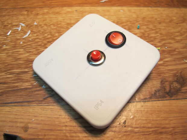 Un botón cambia la velocidad del motor, otro es el control de arranque/parada.