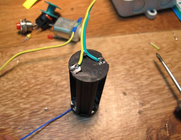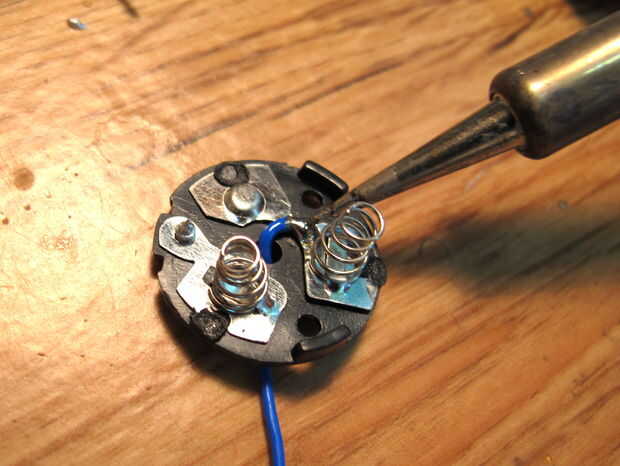 Porque el motor gira demasiado rápido a 4.5V, soldado un cable en el punto a dos velocidades diferentes para la operación de 1.5V.