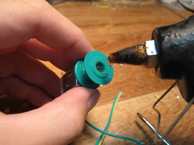 Usé pegamento caliente para fijar el carrete al eje del motor.
