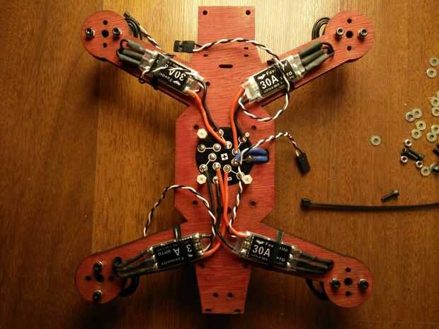 esta es la segunda versión de un pequeño helicóptero cuádruple que diseñado y construido. Está diseñado para que la herramienta necesaria para construirlo es un cortador láser.Puede obtener marcos multicopter para barato de un número de fuentes, pero