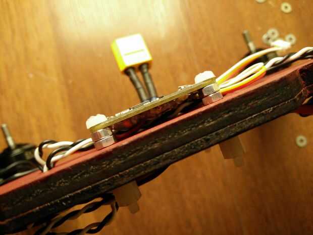 Utilice los tornillos sobrantes que vinieron con el motor. Recuerda no sobre apriete de los tornillos en los separadores de nylon. Podría utilizar locktite pero yo no, mal lo deja a usted. Estén casi hechas. Te ahora sólo queda configurar tu Naze32. Se puede utilizar acero o separadores de aluminio así pero me encontrar nylon mejor en el momento de un accidente.