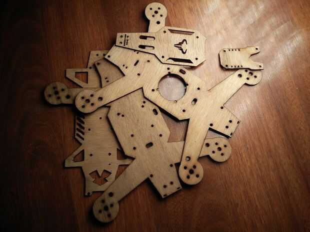 Haz el corte del LASER PDF en un taller de corte láser local. Usé 2mm y 4mm de madera contrachapada para el marco. Capas más gruesas también funciona!