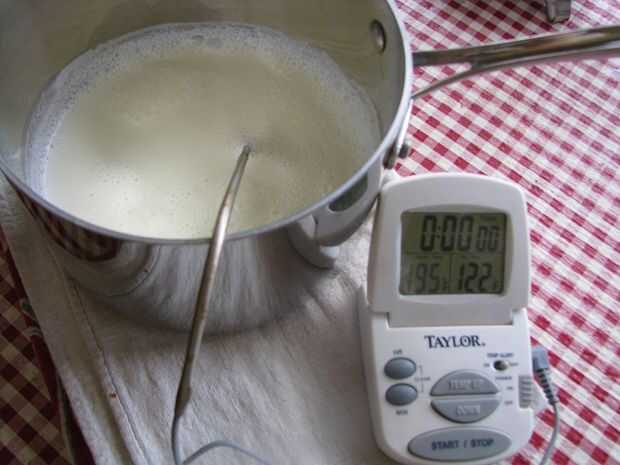 Idealmente usted quiere la leche en algún lugar entre 180° F y 200° F (83° C a 93° C) pero no se preocupe si la leche hierve-puede degustar un poco chamuscado es todo. Sin un termómetro, tomar la leche del fuego cuando las burbujas forman alrededor de los bordes y comienzan a cubrir la superficie, pero antes de que la superficie comienza a expandirse hacia arriba.