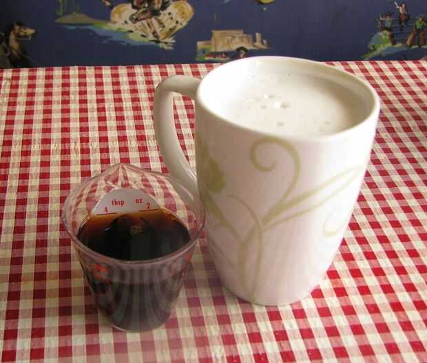 (Para no enfriar el café con leche demasiado, puede calentar el extracto durante unos segundos en el microondas antes de verter en la leche).