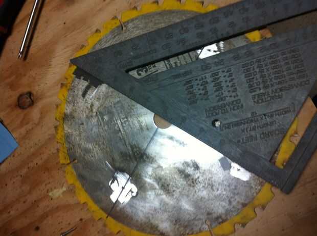 Para hacer este trabajo y vea realmente agradable que desea centrar la hoja en el mecanismo de Lazy Susan. Para ello utilice su plaza rápida u otro borde recto y dibujar dos líneas a través del centro de la hoja en el lado no pulido partirlo en exactamente incluso cuartos. La forma más sencilla de hacer esto es alinear su borde recto con la parte frontal de los dientes en los lados opuestos de la hoja.