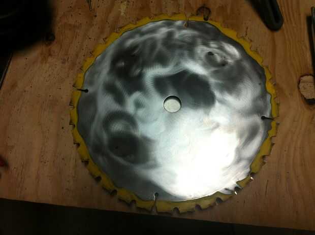 Voltee la pieza, que tenga un par de manchas oscuras en el otro lado ahora de la soldadura, estos sacar sin problema y te deja con un buen proyecto. Tirarla en una parrilla o en la cocina o simplemente utilizarlo como tornamesas de proyecto de garaje o lo que sea y disfrutar.