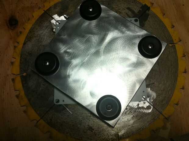 Una vez que tengas tus líneas poner su base en la cuchilla y alinee los orificios en el Lazy Susan mitad no sujetada a nada en las líneas que trazaste. Si usted tiene las líneas bifurcarse cada agujero como se muestra en la imagen, han centrado el mecanismo Susan perezosa en la hoja, es así de simple.