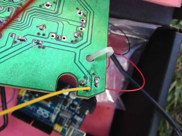 1. conectar el pin de fuente de BS170 a GND de arduino (el cable negro en la fotografía de circuito) 2. Conectar drenaje a perno izquierdo superior del botón (el cable amarillo en la foto de circuito) de BS170 3. Conectar del BS170 rejilla a la arduino DIGITAL 5 (el cable naranja en la imagen del circuito) 4. Conectar el resistor de 10K para corta el cable GND y el alambre de la rejilla.