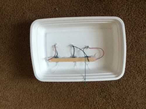 Para completar este proyecto, tenemos que insertar nuestras baterías en cada tecla. Tome el cable soldado al cable negativo del LED y manténgalo en el lado negativo de la batería. Mantenga el cable que viene desde el botón y mantenga en el lado positivo de la batería. Cinta eléctrica alrededor de la batería entera haciendo que los cables permanezcan adjuntas a la batería. Hacer esto para cada clave y probar cada uno presionando los botones en la parte superior del contenedor.