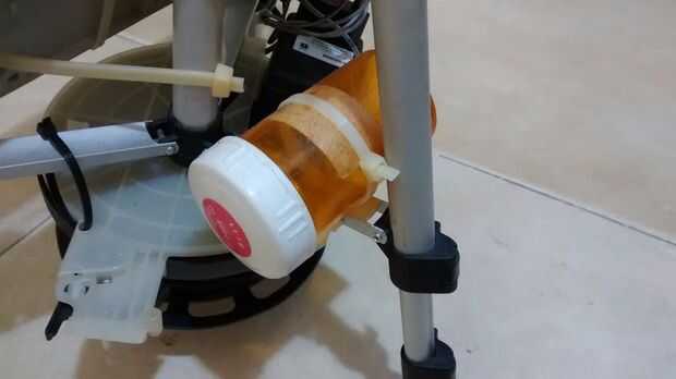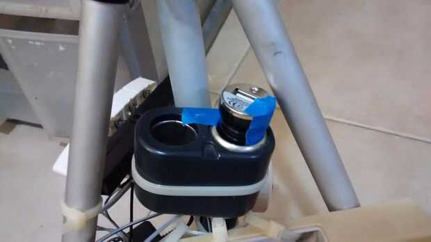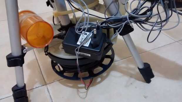 En la cuarta foto que se puede ver allí es un componente redondo, es un cable retráctil que tomé aparte de una aspiradora y se conecta con el adaptador de alimentación (salida de 1.5 amperios)