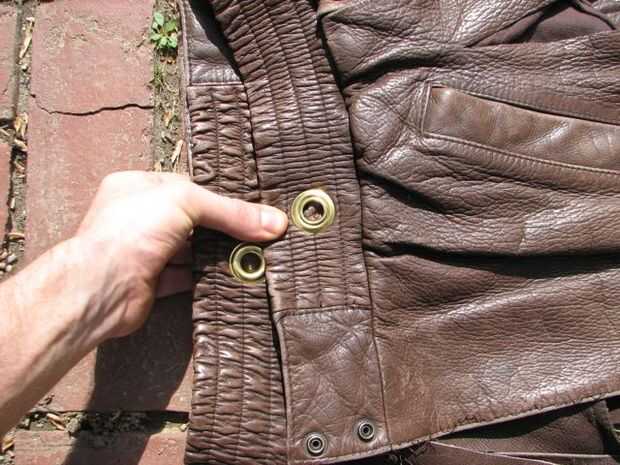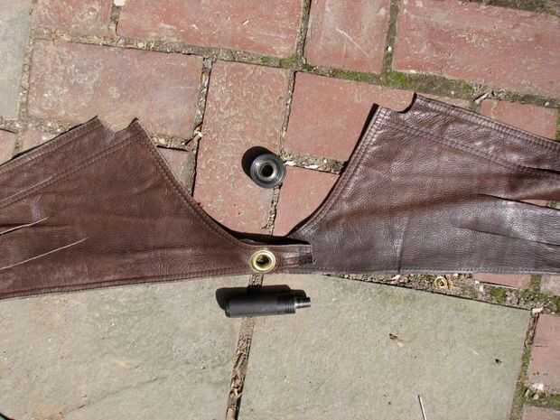 Para terminar, he añadido dos arandelas de 1/2" en la parte posterior de la cintura. El sujetador de la banda junto con sus dedos ajustados a la cintura y marcar los puntos. Luego, una simple pieza de amarre será reunir los ojales y apretar las cosas, 'forzar' una cintura para su túnica con un nudo simple.