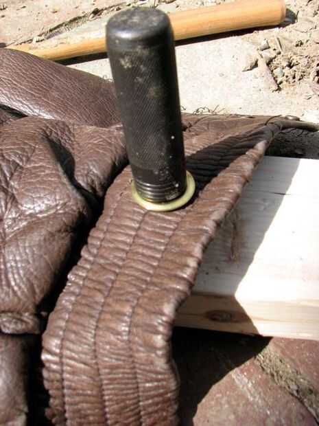 No te preocupes con un sacador de agujero, por el camino. Sólo se cortan x en el material y ampliarlas con tijeras o cuchillo para pop aunque la cabeza de la arandela. Ese sandwich elástico es dura, pero dará.