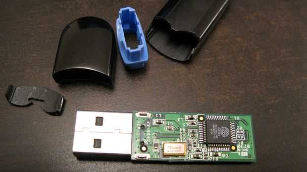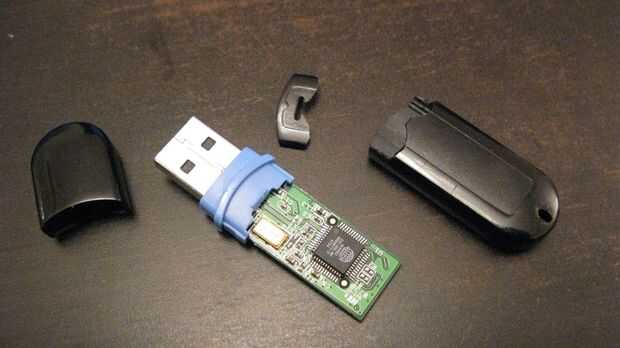 Debido a la grieta en la cáscara, el pendrive no llevó a cabo juntos ya. Por lo tanto, desarmarla no requiere ningún esfuerzo en absoluto. Si usted tiene una unidad flash similar, en condiciones intactas, todo lo que necesitas hacer es presionar suavemente la punta de un destornillador pequeño en la parte azul.