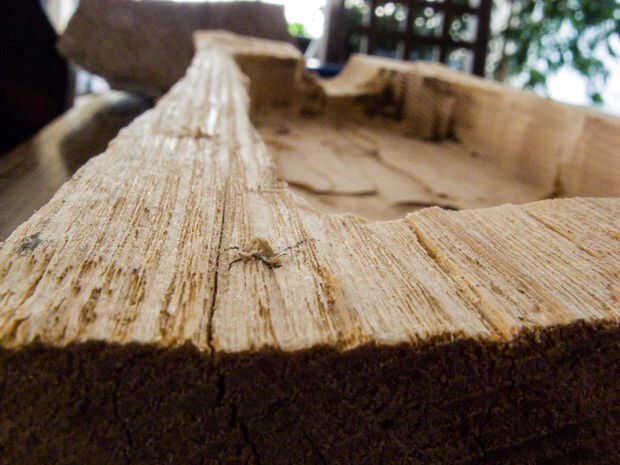 Ya que quería hacerlo rápidamente debido al bajo cero temperatura exterior donde trabajaba elegí el contorno de la ruta y quitar las ampollas con un cincel. Efectivamente podría hacerlo con sólo un cincel o con sólo un router. Las miradas en el interior no importan así. Compruebe cómo las mitades montar al final y fijan cualquier lugares extravagantes y usted debe conseguir un buen ajuste rápido. Puesto que el registro se divide el grano caerá juntos muy bien y usted sabrá inmediatamente que es bueno.