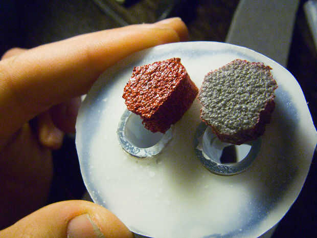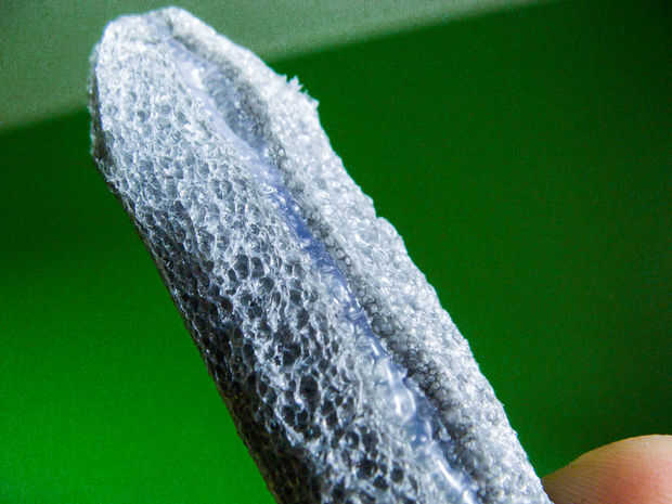 La pieza del brazo y los dedos falsos y Palma en el guante más o menos fueron hechas de aislante de espuma de algún tipo (algo así como ponen en los tubos de agua). Es increíblemente fácil de trabajar y pega muy bien con pegamento caliente porque se funda un poco y también es posible pintar a un grado. También usé algunos plástico semi duro en algunos lugares, incluyendo un apoyo no tan efectivo para mi muñeca, por lo que es más fácil mantener doblado. Los huesos se hicieron del mismo tubo en el hacha rociado blanco y pegado con piezas de espuma rociada rojo en su interior para imitar la médula ósea. ¿Van demasiado lejos con la última?