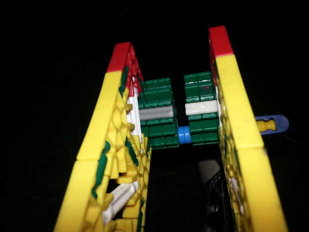 FOTO 7) tomar nota sobre cómo los conectores verdes están conectados a la barra amarilla y el bobs "rectores" en el extremo.