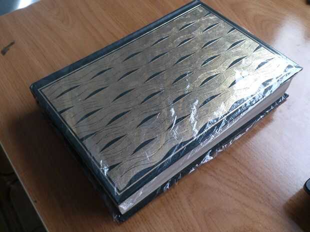 Lugar un peso sobre el libro y deje que el pegamento seque. Utilice un peso pesado lo suficiente como para que los bordes de las páginas se comprimen juntos, utilicé un transformador grande que peso alrededor de 4kg.