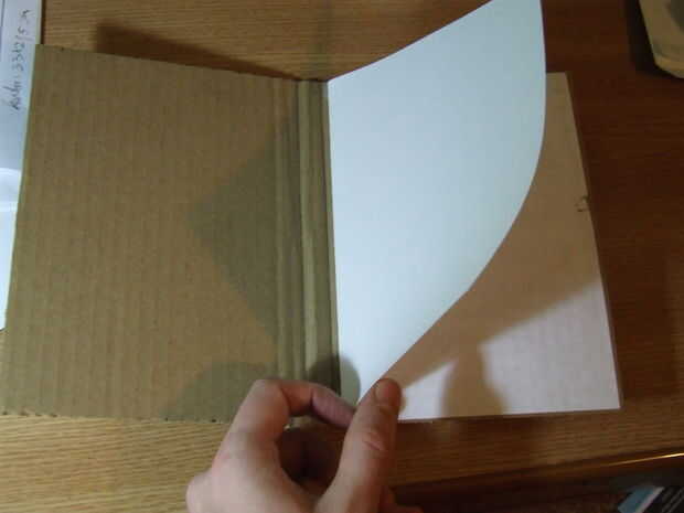 Antes de poner el espejo en la tapa, pegué otra hoja A4, así que cuando quiero insertar el interior parte, se pega la última página a la página suelta de esta hoja.