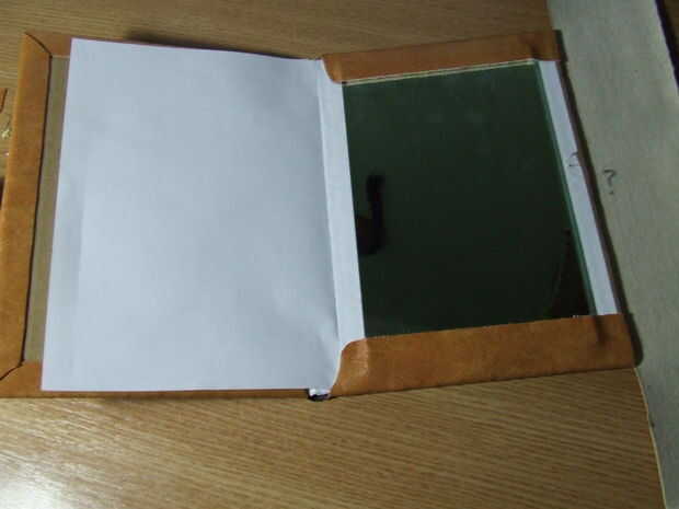 He aplicado otra hoja A4 doblada a la Página principal también, pero aquí, ya que he añadido después el cuero artificial, tuve que cortar la parte superior e inferior de un lado, por lo que quedaría más estético. La parte sin cortar de la hoja será exactamente del tamaño de las páginas, desde el interior parte y tú tendrás que pegarlos juntos.
