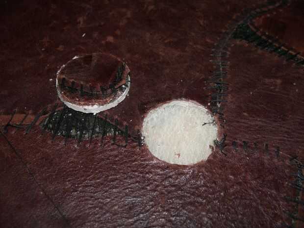 Luego cortar la capa superior de piel y pegado en la rueda de perf en una yuxtaposición de mi agrado.