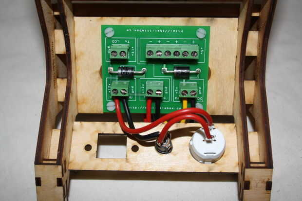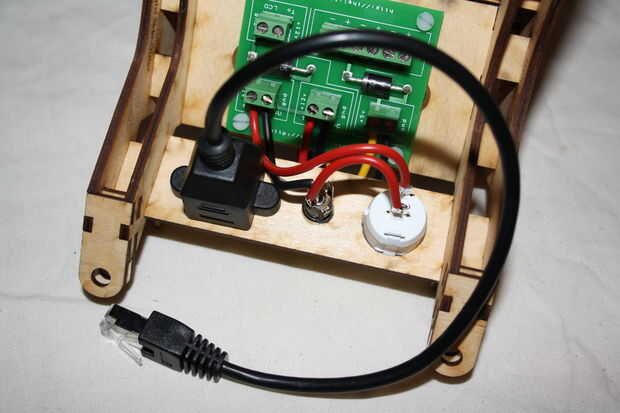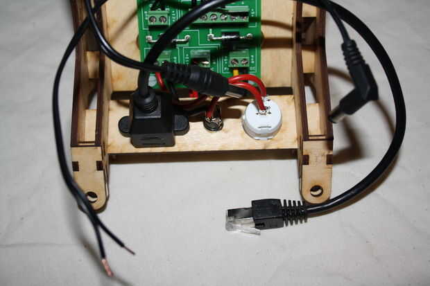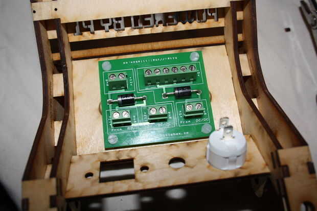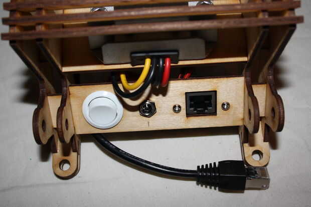 La CAT5e (red) del zócalo, el DC Jack y panel de interruptores de potencia ha se intercambiaron alrededor de modo que en la producción toma version del CAT5e y entradas de alimentación están en el mismo lado como el Raspberry Pi y el DC para el PWB de la energía. Como ahora están en lados opuestos para cruzan los cables.