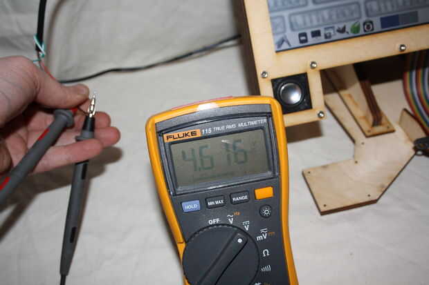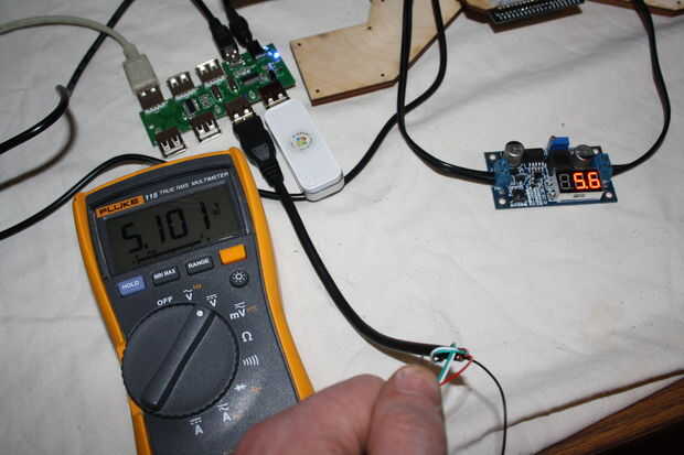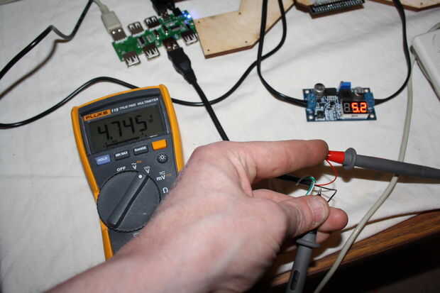 Durante 14 de paso cuando yo estaba montando el PCB de potencia hubo una caída de tensión relativa a. Prueba la potencia de salida en el Hub USB muestra sólo 4,7 voltios disponibles. Esto simplemente no es suficiente.