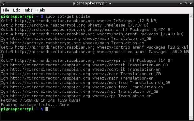 wget descargará a su directorio home (si ese es el directorio en), el último núcleo de frambuesa Pi fuente desde GitHub. Puedes leer más sobre el núcleo visitando su página en GitHub, https://github.com/raspberrypi/linux.